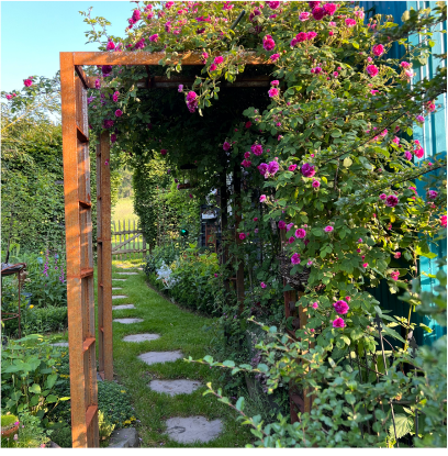 Besides roses, evergreen ivy, a flowering clematis, or Virginia creeper with juicy grapes will also adorn your Garden arch beautifully and make it an inviting focal point.