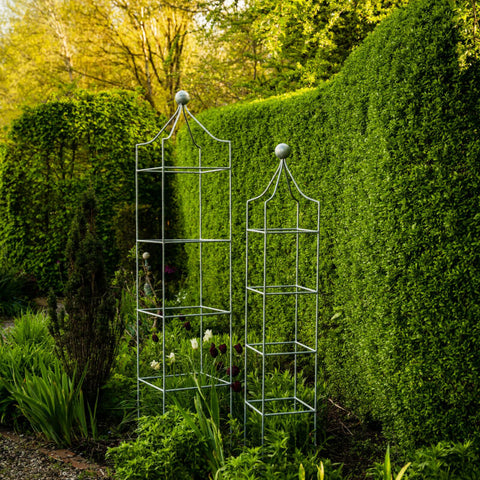 Our metal obelisks are all made of durable wrought iron and provide a beautiful showcase for your climbing plants. Due to the extremely durable material, they provide secure support for your plants, allowing them to climb magnificently. A metal climbing obelisk is both practical and an elegant addition to your garden.