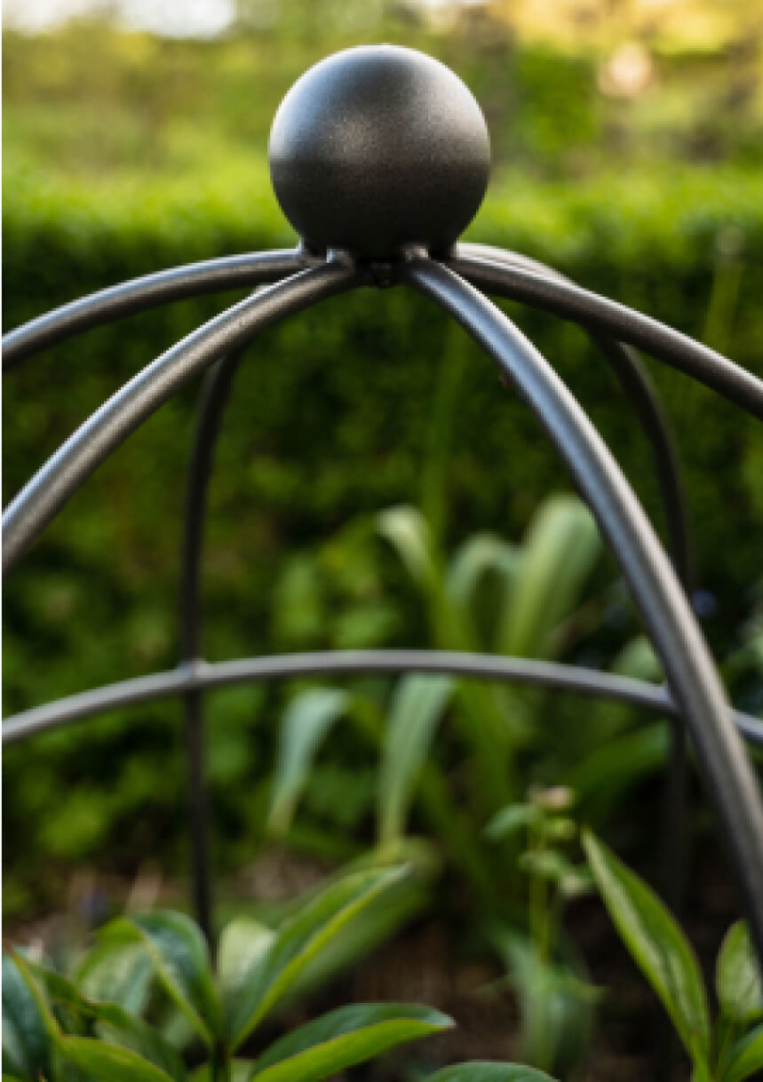 Metal has many excellent properties and is ideally suited for the production of climbing obelisks. The obelisks are shaped by hand under high heat. They are solid and stable. Due to the material's weight, you won't have to retrieve your climbing obelisk from somewhere in your garden after a strong wind. Snow and freezing temperatures also have no effect on the metal. It has a high-quality appearance that lasts for years – without requiring much maintenance. A metal climbing obelisk from ELEO Garden is therefore ideal for outdoor use. Choose the coating yourself – patina (uncoated), hot-dip galvanising, or powder coating in a duplex system will further enhance your climbing obelisk.
