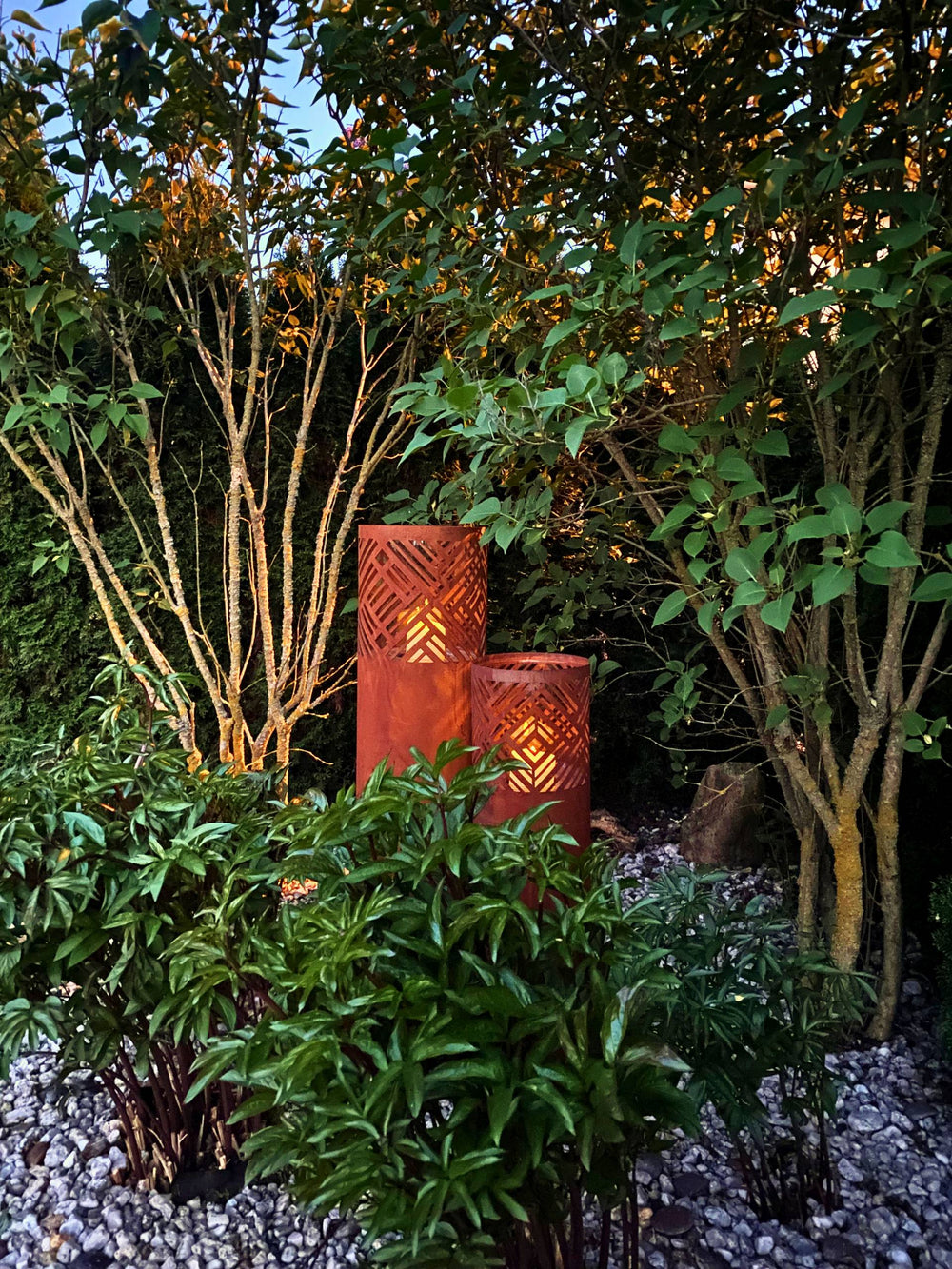 Gartenstecker Treviso und Vicenza im Set in unbeschichtet als 3D-Modell Gartenstecker Treviso und Vicenza im Set in feuerverzinkt in einem Garten