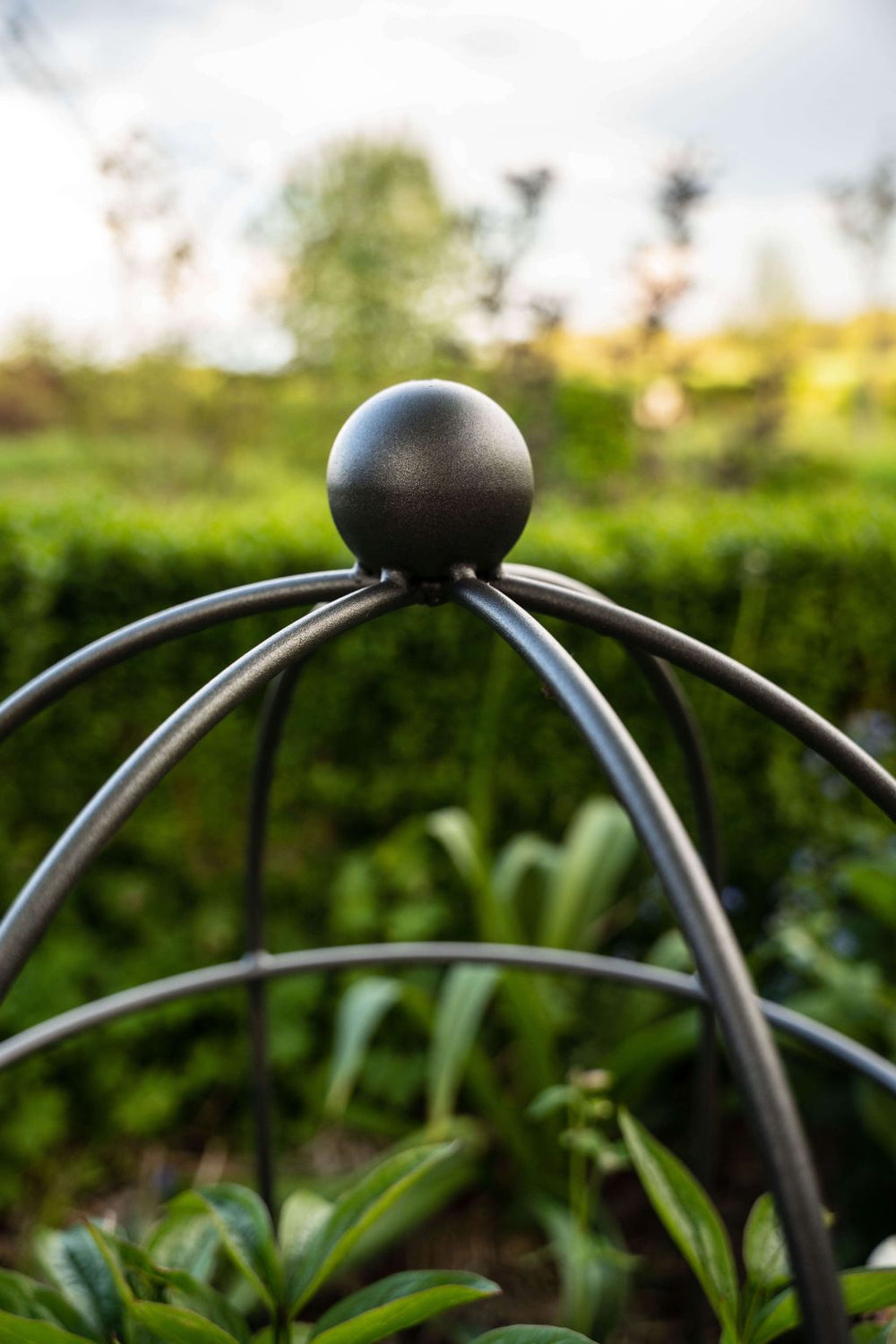 A robust classic in a timeless design: The "Arezzo" plant support provides reliable support for climbing plants, perennials, and shrubs and is a timelessly beautiful eye-catcher. Handcrafted from solid wrought iron, "Arezzo" withstands the elements year-round. It has a total height of 85 cm and a width of 50 cm.