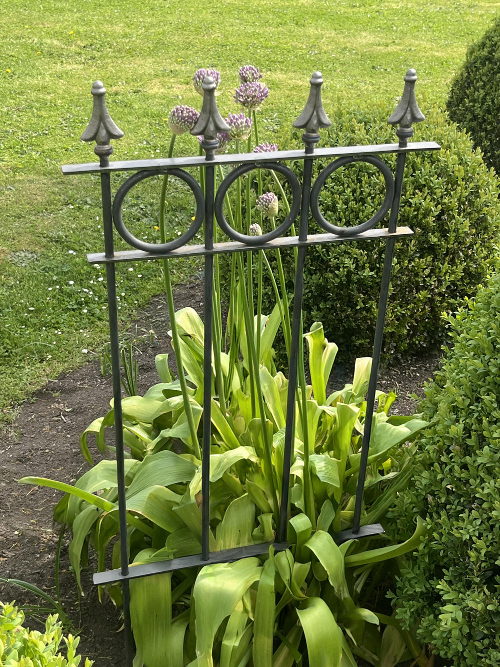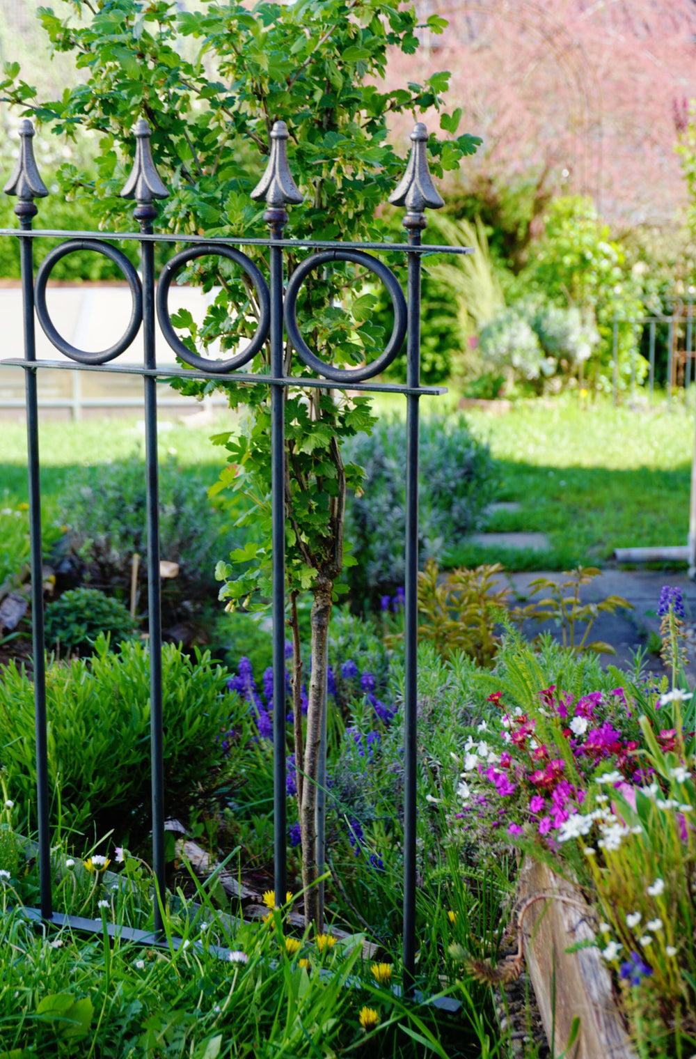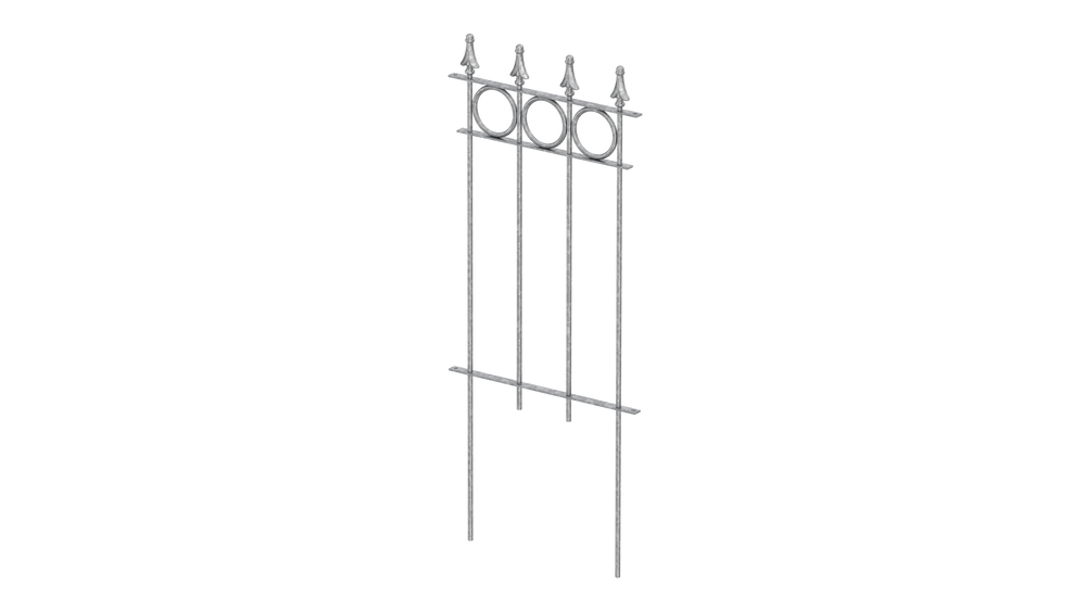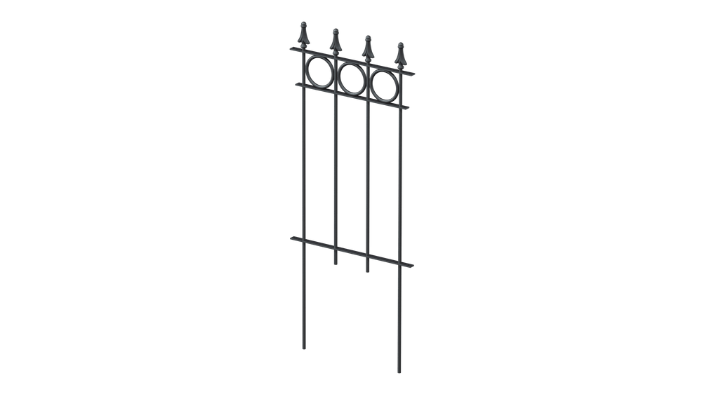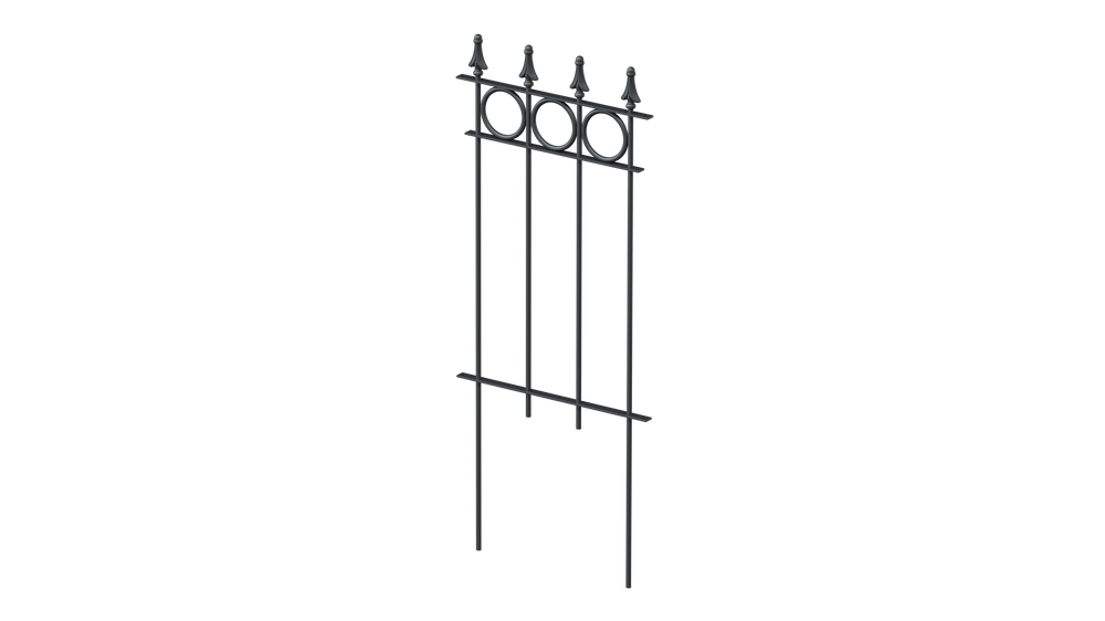 With its circular ornaments and decorative pine-shaped finial, our "Belluno" modular fence stylishly frames your flowerbeds. Like our fence model of the same name, "Belluno" is handcrafted from weatherproof metal. Each fence panel measures 44.1 cm wide and 105 cm high (including finial and ground anchor) and can be easily connected to other panels using a connecting plate and screws. Choose your own coating and give your "Belluno" a truly individual touch!