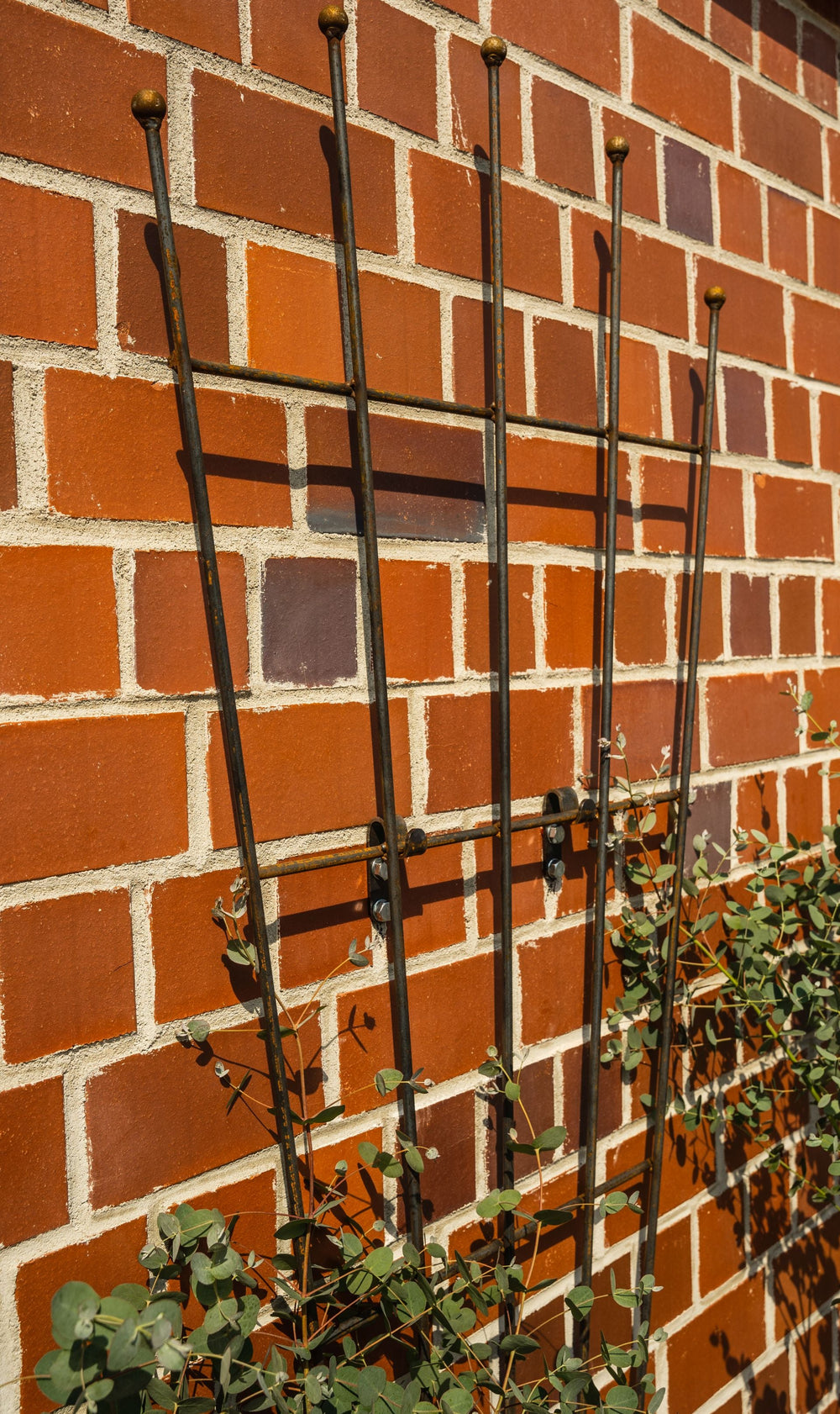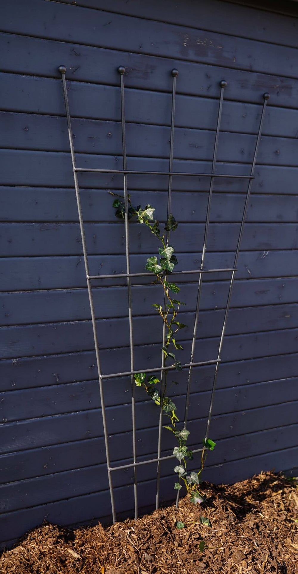 You can mount "Brindisi" quickly and easily to your house wall or a fence. Handcrafted from solid metal, the trellis reliably withstands all weather conditions for years to come. The spherical finials are a particularly eye-catching feature. Four mounting brackets are included. You will receive the "Brindisi" trellis directly from us as the original manufacturer. We prioritize the highest quality, design standards, and customer satisfaction. Tip: Looking for a narrower trellis? Then our "Bari" model is a great choice! Please note that delivery times are longer for custom-colored duplex powder coatings. Your chosen item will be refined for you using an elaborate process – you will receive a unique, one-of-a-kind piece.