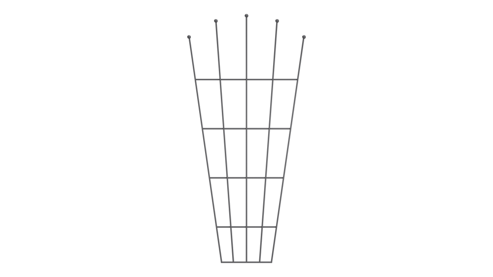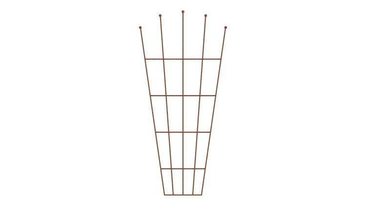 Practical and elegant: Our popular "Brindisi" trellis impresses with its fan-shaped design. The metal support offers ample climbing space for lush plants like clematis and Japanese knotweed. The overall height is 170 cm, and the width is 81 cm.