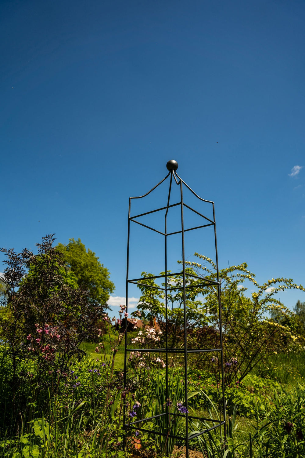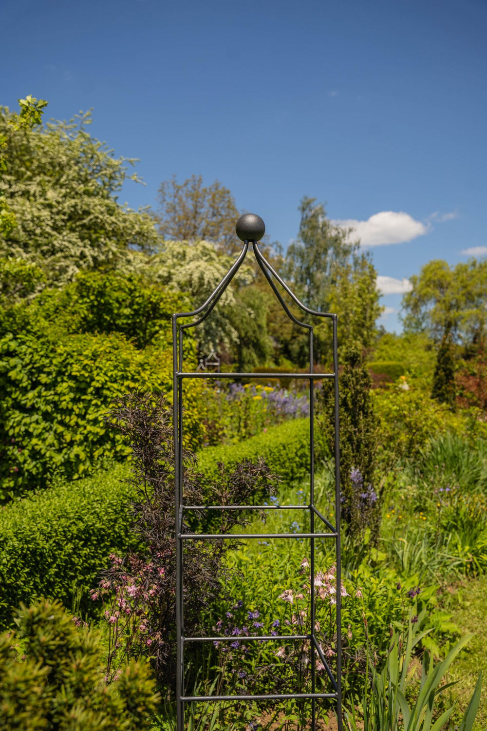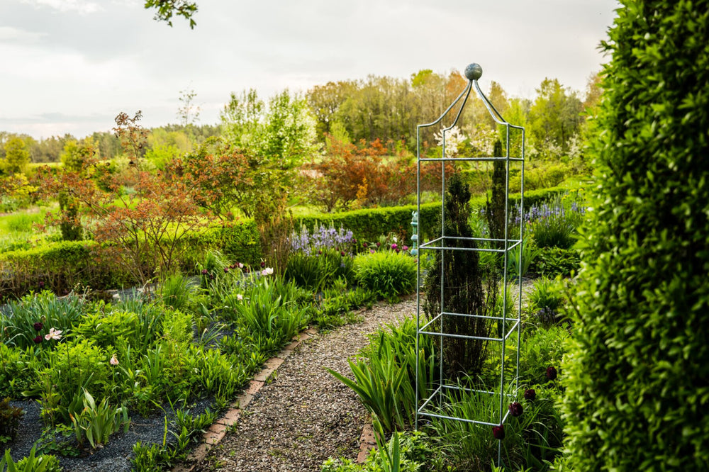 Opulent size, classic design: The large climbing obelisk "Catania" is forged from high-quality metal that reliably withstands the elements. With its impressive size, "Catania" offers your climbing and trailing plants ample space for extensive growth. The overall height is 160 cm, and the width is 34 cm.