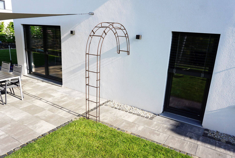 Exceptional design element: Our "Cremona" wall-mounted Garden arch is designed for wall mounting. It provides a practical climbing aid for your favorite climbing plants and is an exclusive eye-catcher. The half-metal Garden arch has a total height of 230 cm and a width of 140 cm. "Cremona" is handcrafted from high-quality metal and reliably withstands the elements for years to come.