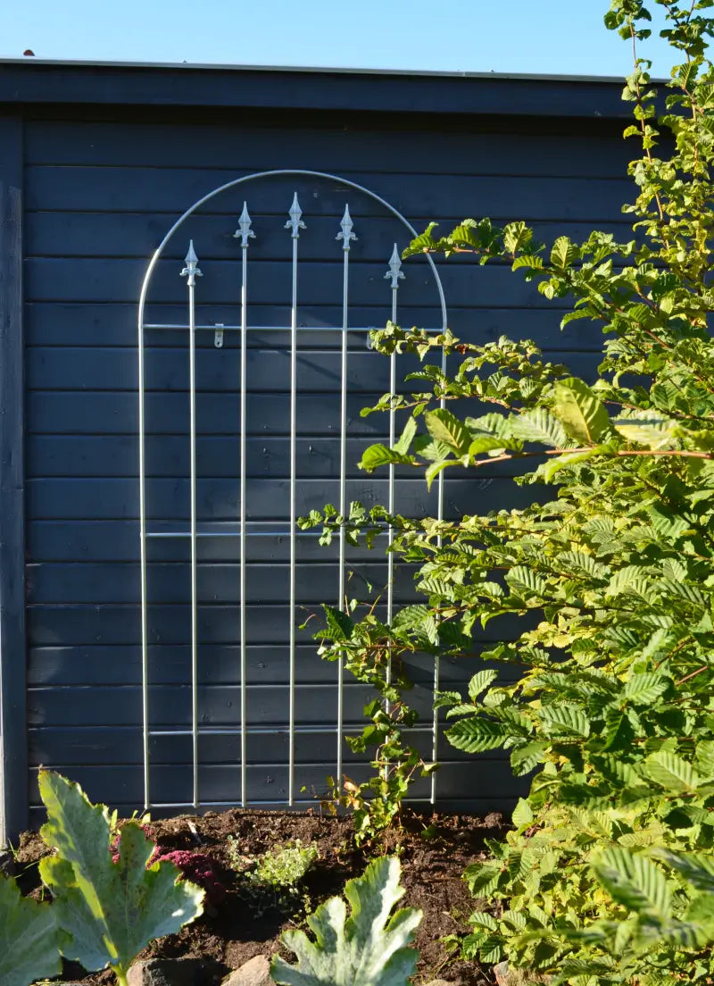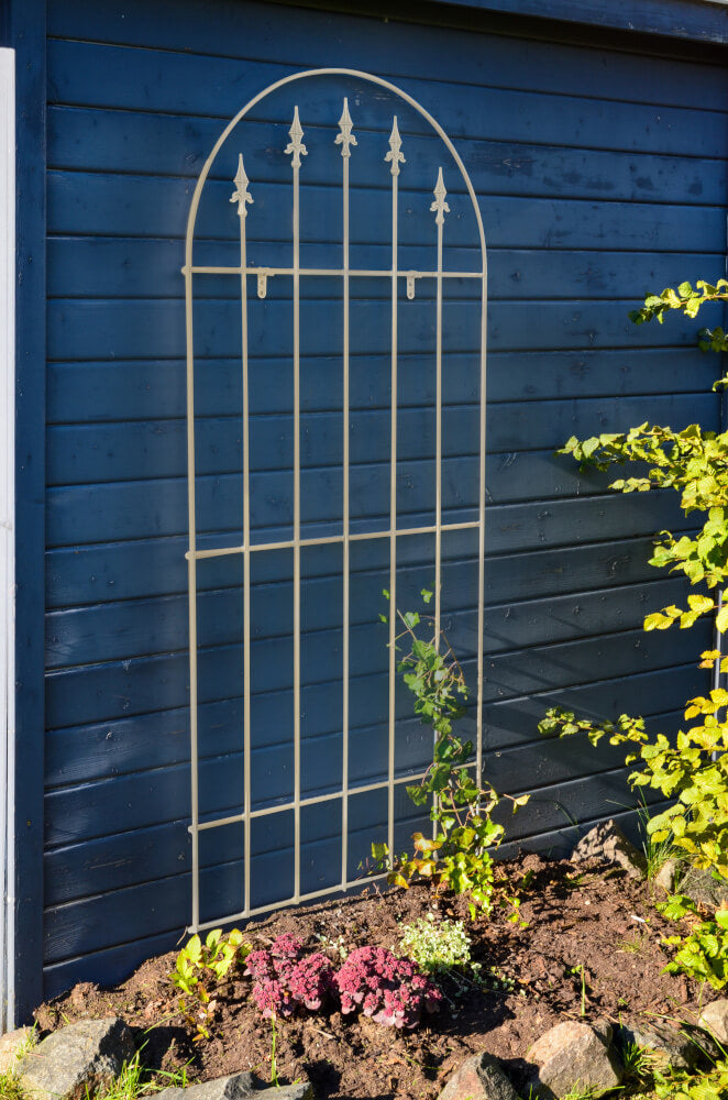 Our "Edera" wall trellis – arched design with elegant fleur-de-lis