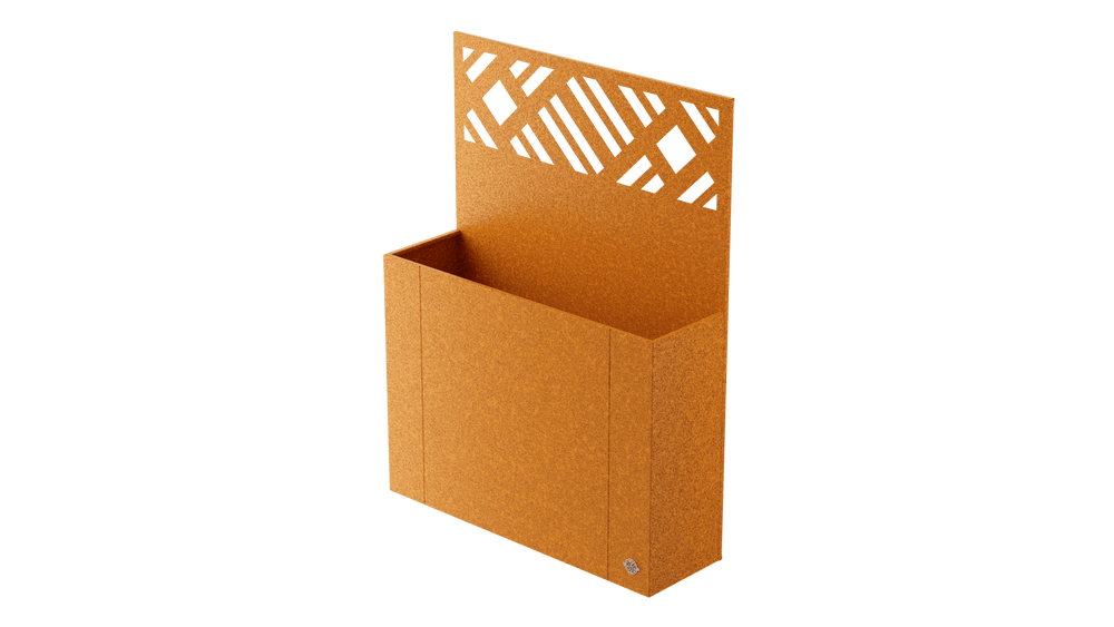 Our "Manarola" raised garden bed with privacy screen, made of weatherproof Corten steel, offers ample space for a variety of ornamental and vegetable plants. It measures 40 x 136 x 100 cm. The integrated privacy screen can also be used as a support for climbing plants. The screen is 180 cm high.