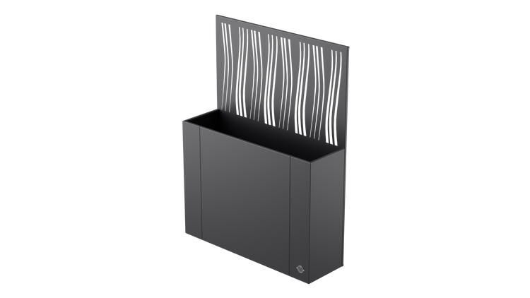 Our "Manarola" raised garden bed with privacy screen, made of weather-resistant metal, offers plenty of space for ornamental and vegetable plants. It measures 40 x 136 x 100 cm. The integrated privacy screen not only protects your privacy but is also ideal for planting climbing plants. The screen is 180 cm high.