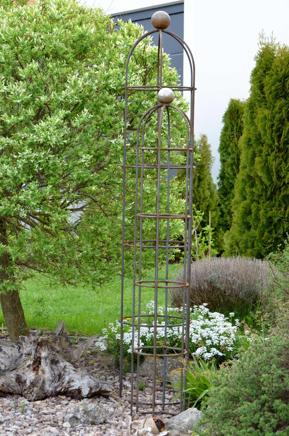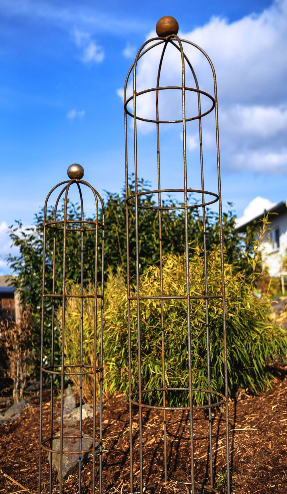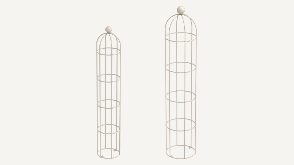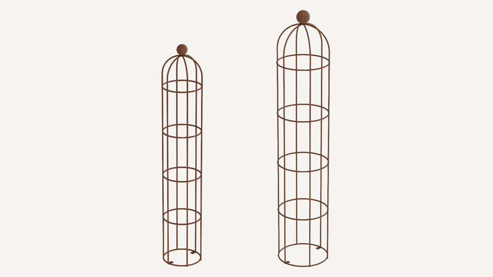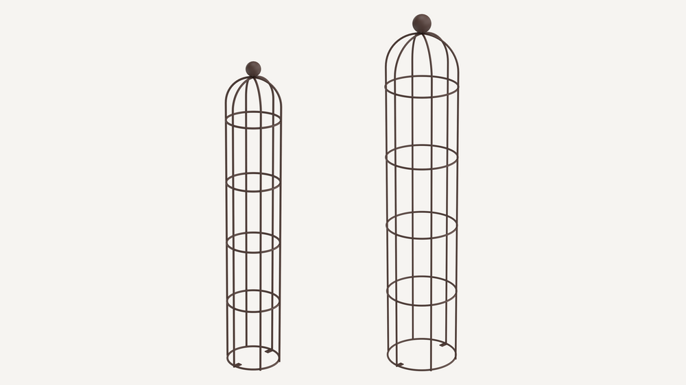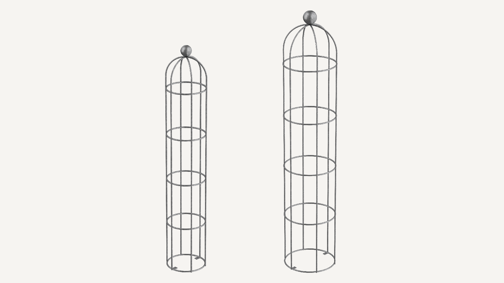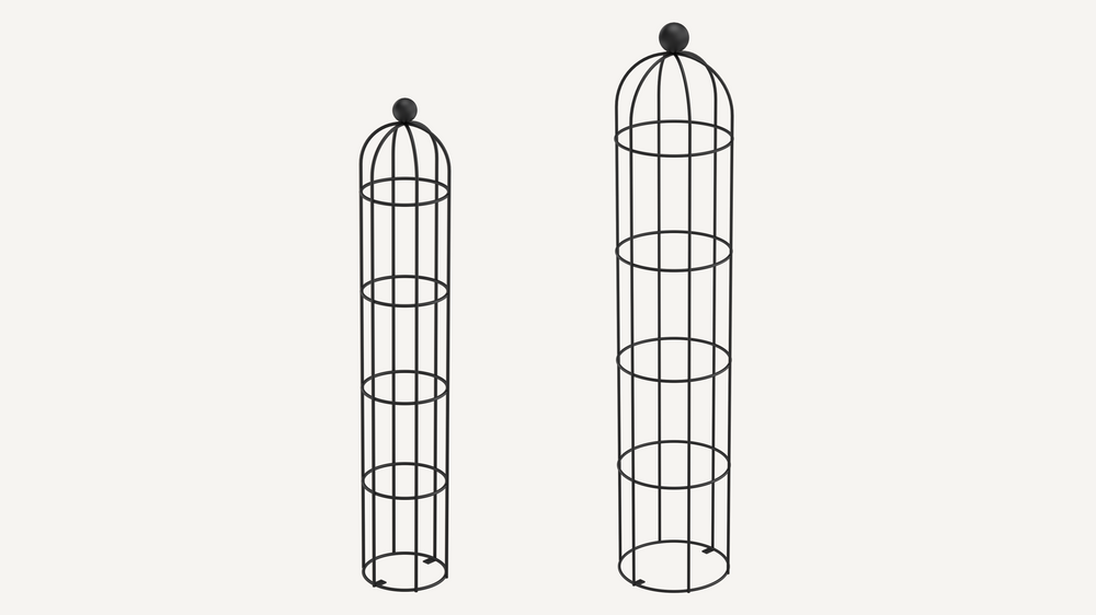Elegant, timeless climbing obelisks in a great value set of two: The sturdy "Messina" climbing supports, available in large and small sizes, are forged from high-quality metal. They feature a classic, cylindrical design. This set offers your trailing and climbing plants plenty of room for extensive growth. The overall height is 160 x 34 cm for the large "Messina" and 140 x 29 cm for the small "Messina".