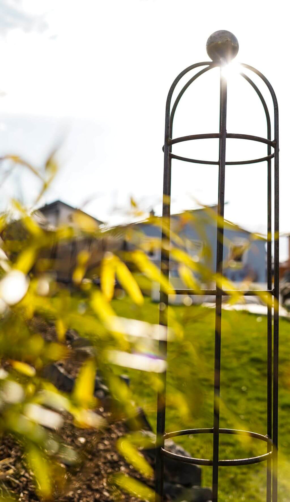 The "Messina" climbing obelisk in a smaller version is ideal for narrower flower beds and is a striking eye-catcher. It provides secure support for your plants as they climb and twine. "Messina" is made of high-quality, solid metal – wind and weather won't harm it. The overall height is 140 cm, and the width is 29 cm.