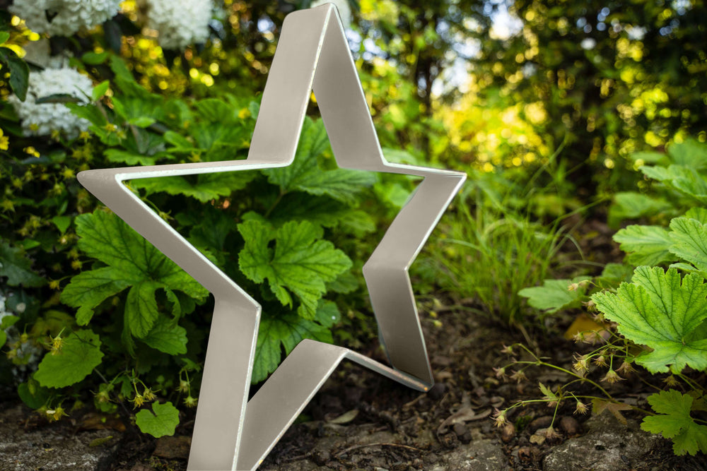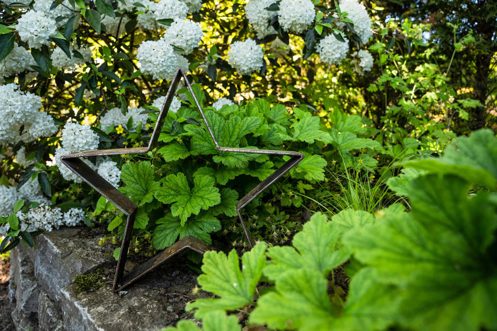 Our small metal star "Novara" is perfect for your garden, patio, or balcony, and also makes a high-quality eye-catcher indoors. Handcrafted from sturdy metal, it is versatile and makes a lovely gift. The metal star measures 35 x 35 cm.