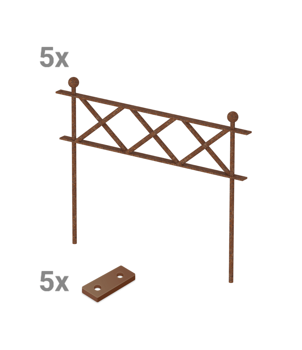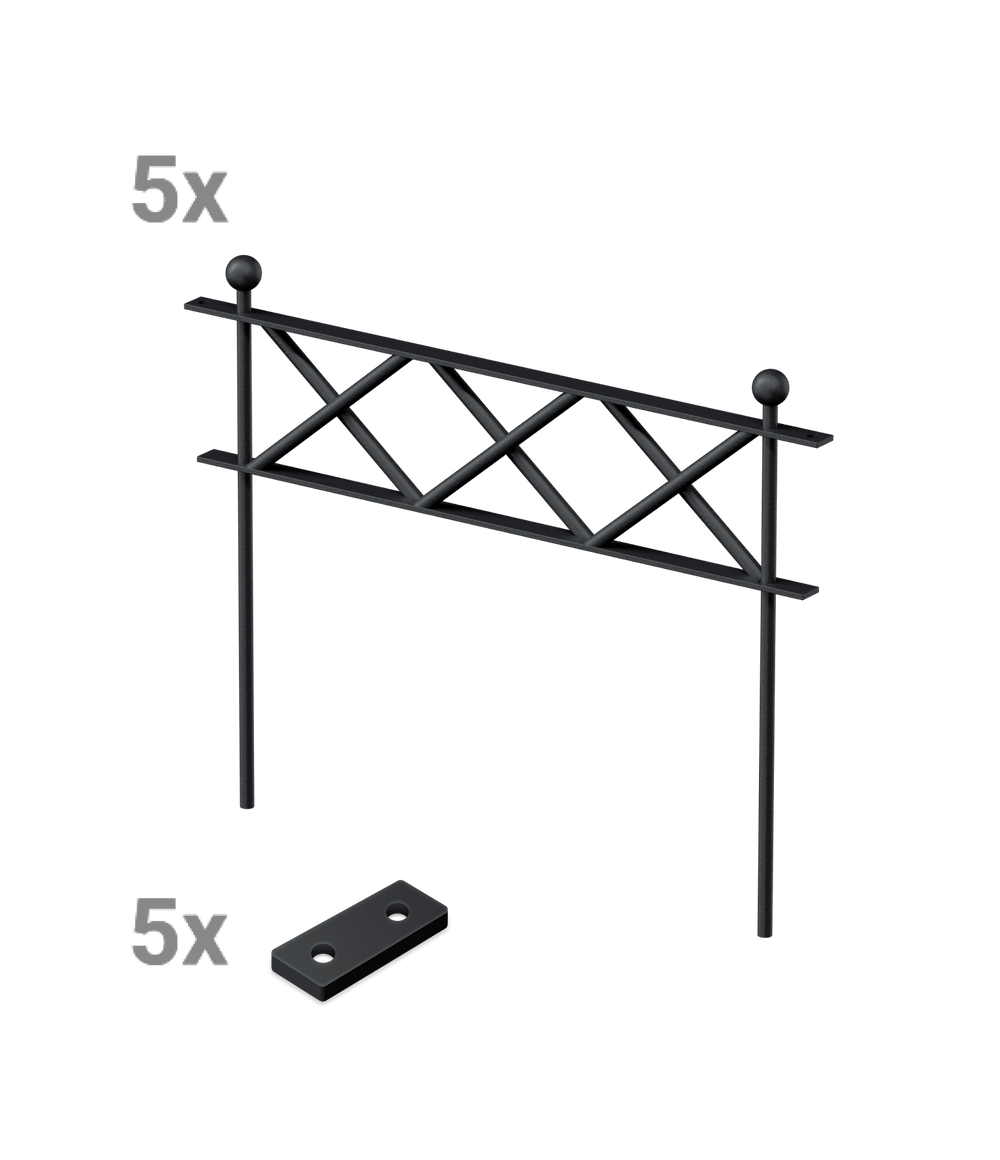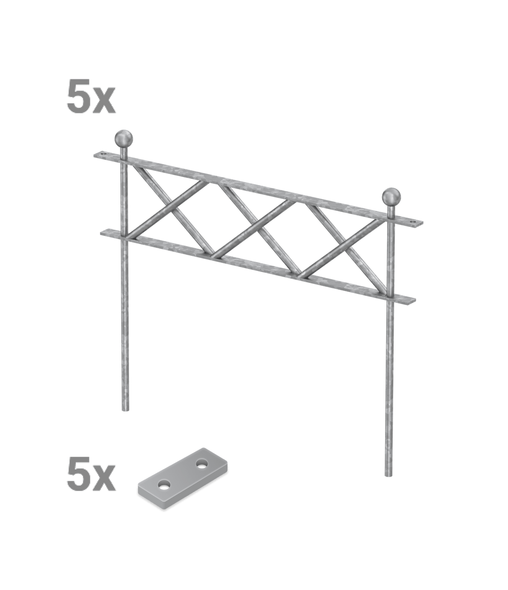 Our high-quality "Pescara" flower bed fence with modern X-shaped designs is available here in a convenient and affordable set. The set consists of five fence panels – each panel is 52 cm wide and 40.3 cm high. The "Pescara" flower bed fence is quick and easy to install. The individual panels are easily screwed together using metal plates. You can choose the finish.