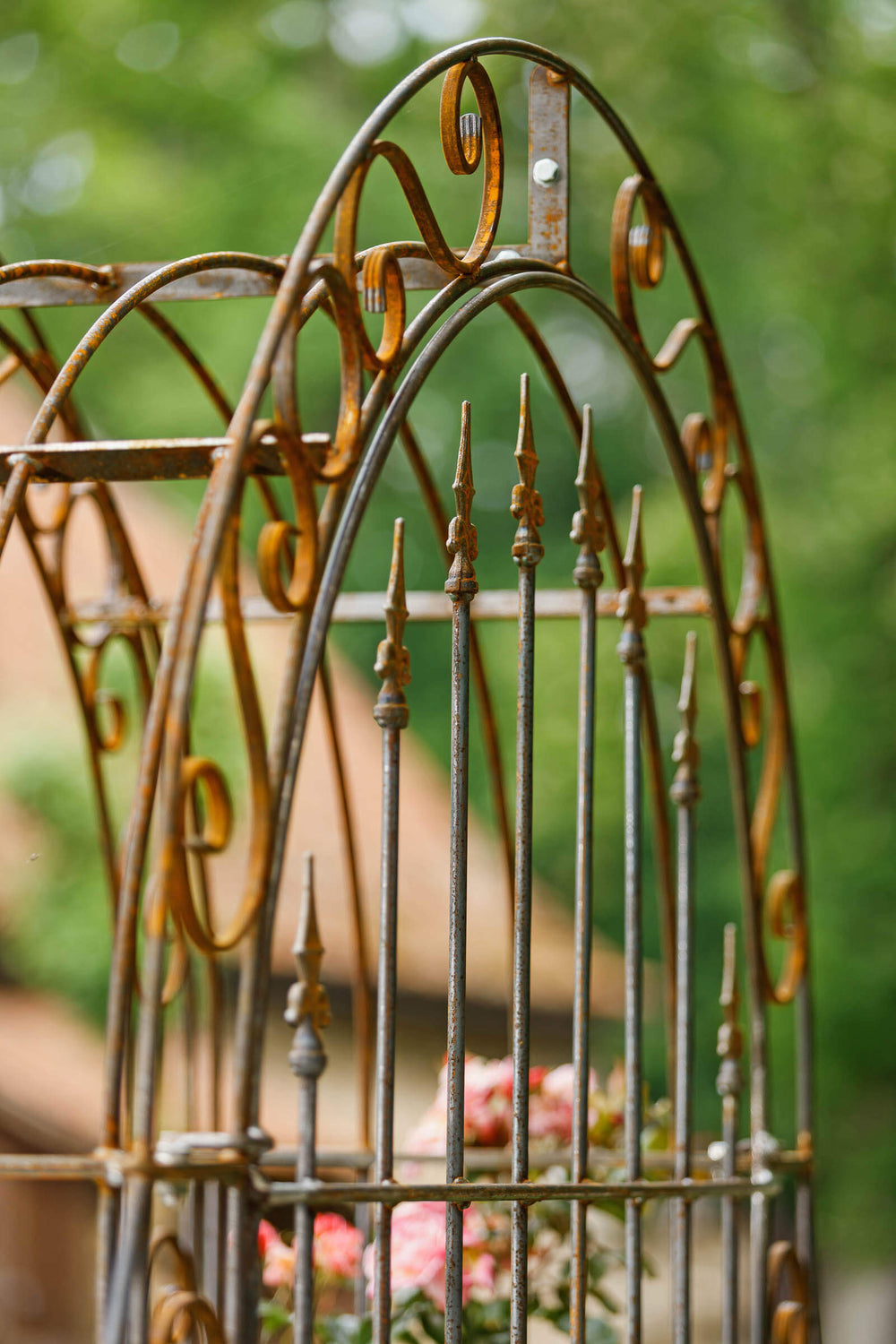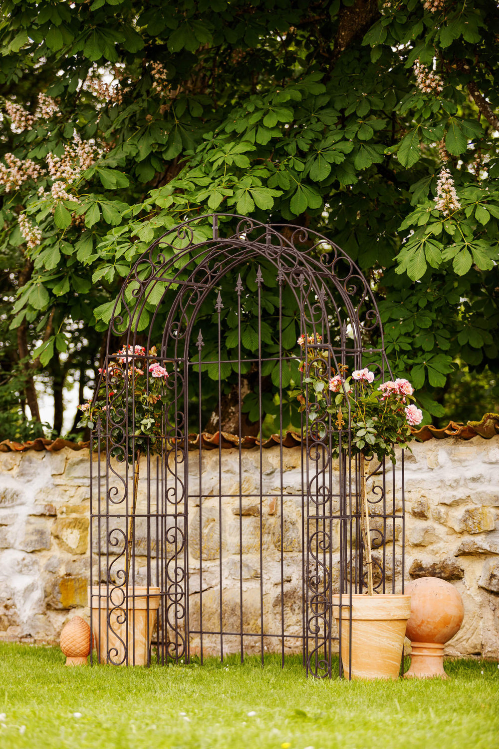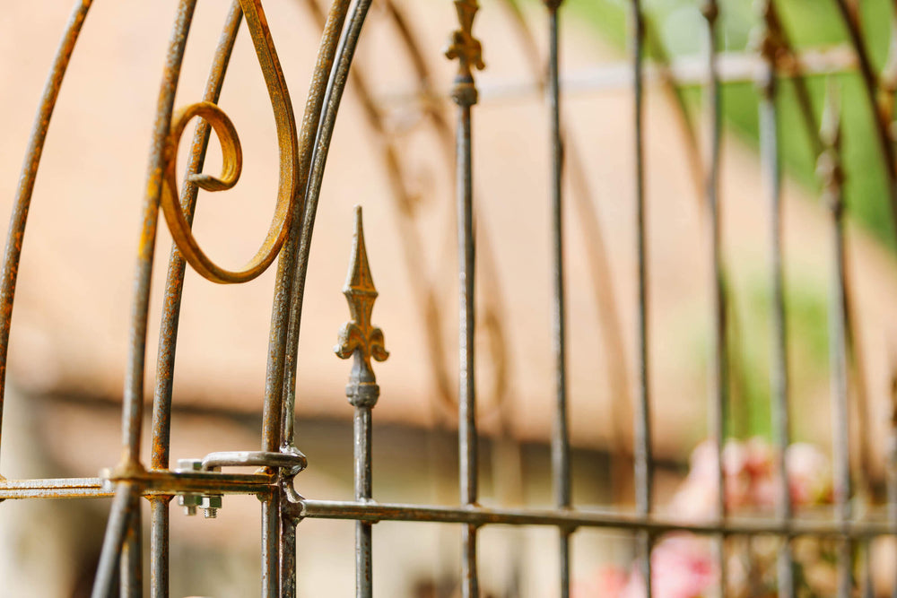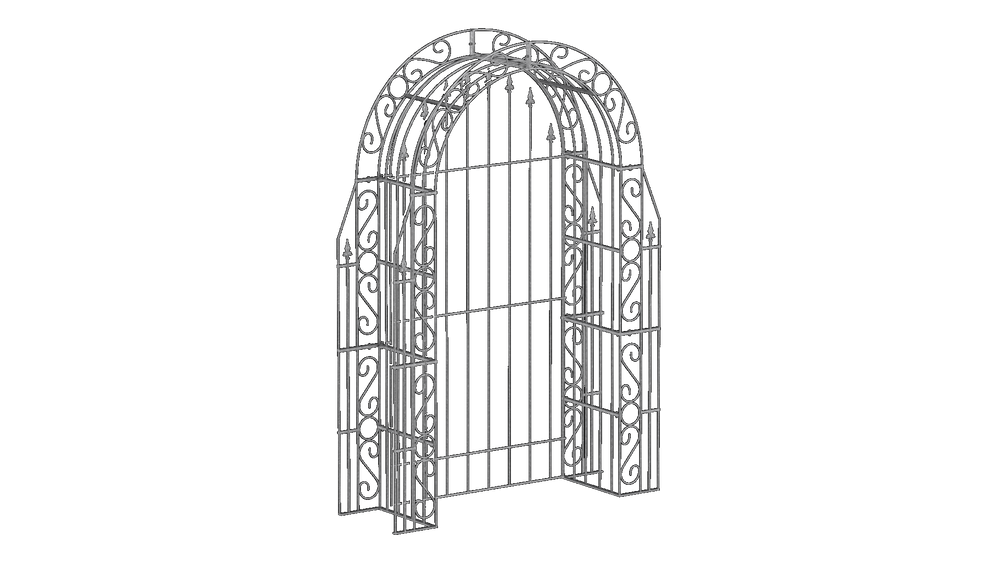 Hand-forged from weather-resistant metal, "Calabria," including the back panel, can remain in the garden year-round. The back panel is decorated with romantic fleur-de-lis finials. Enhance your Garden arch, including the back panel, by choosing your own coating!