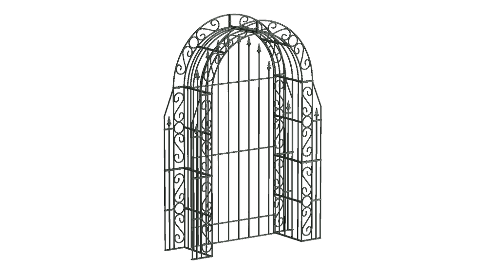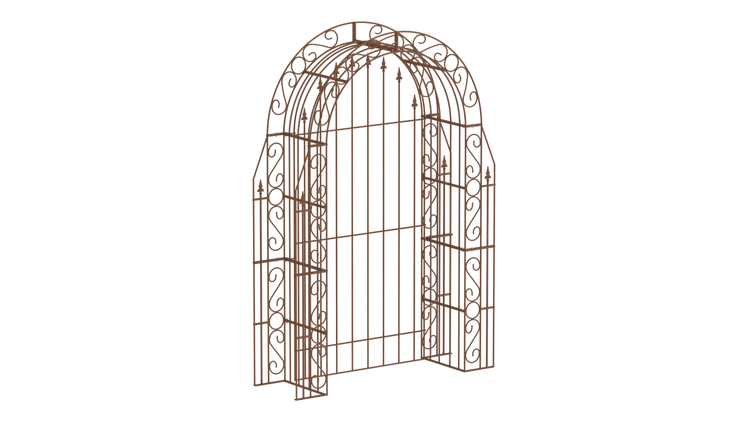The magnificent "Calabria" Garden arch, including a matching back panel, is an exceptional climbing aid that provides natural privacy: Climbing plants can twine around both the arch itself and the back panel, keeping prying eyes away. The metal Garden arch has a total height of 234 cm and a width of 160 cm.