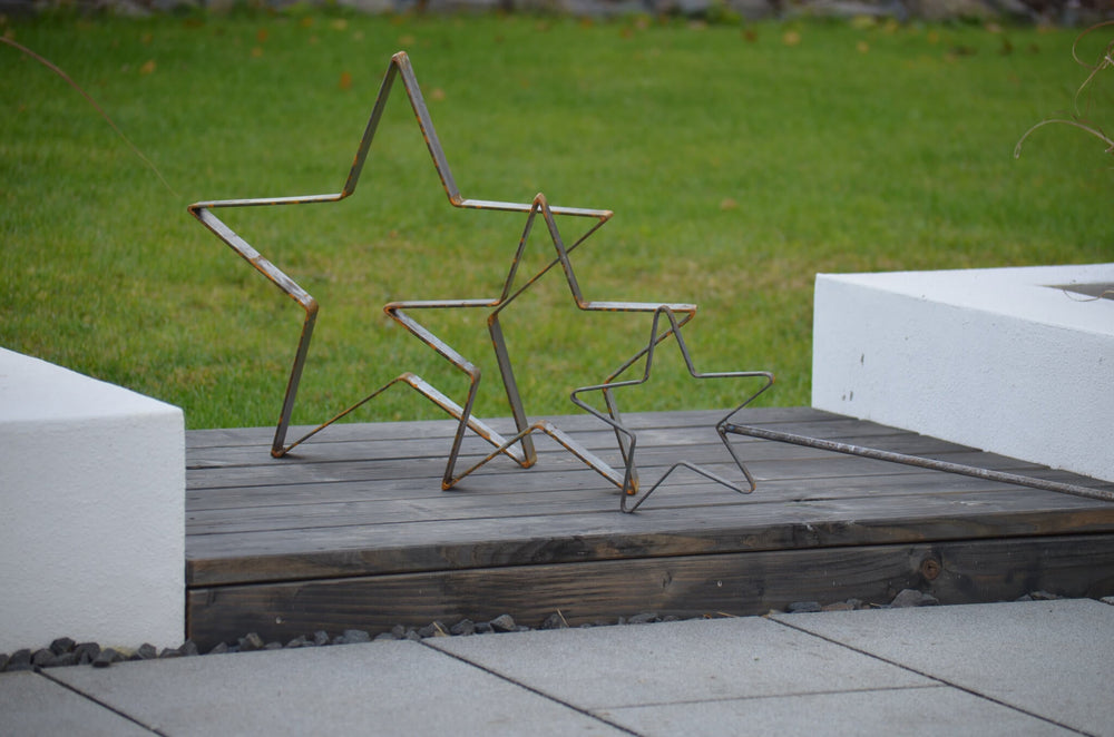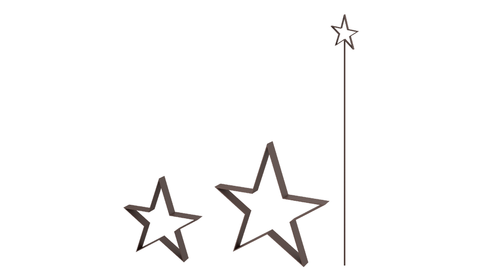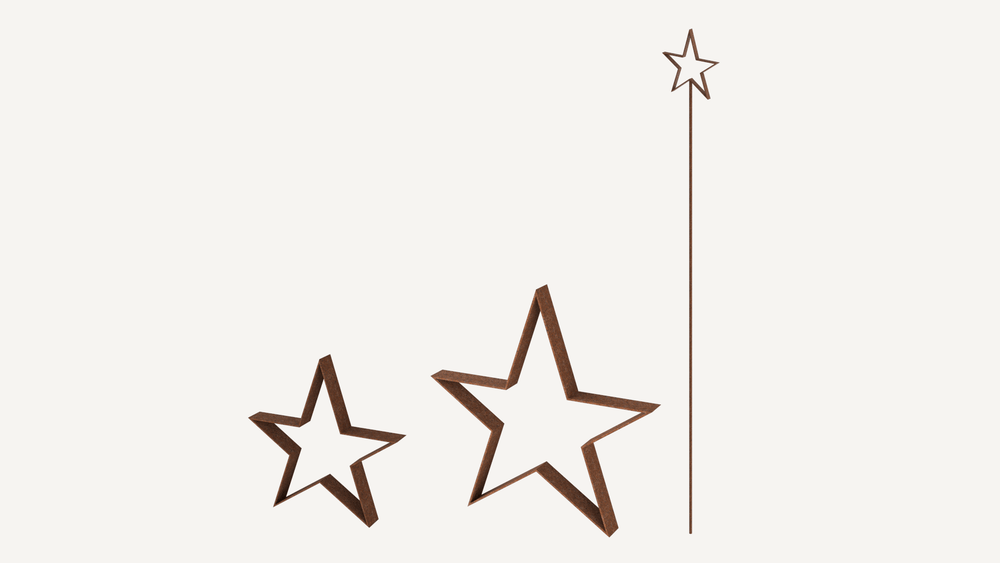 Starry magic for your garden: Our star set consists of the "Tissano" garden stake with a large star tip and the two decorative stars "Novara" in small and large sizes. Handcrafted from high-quality metal, this trio of stars will enhance your garden, front yard, and flowerbeds. The garden stake is 160 cm high, and the two metal stars measure 35 x 35 cm and 50 x 50 cm, respectively.